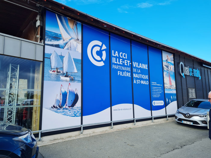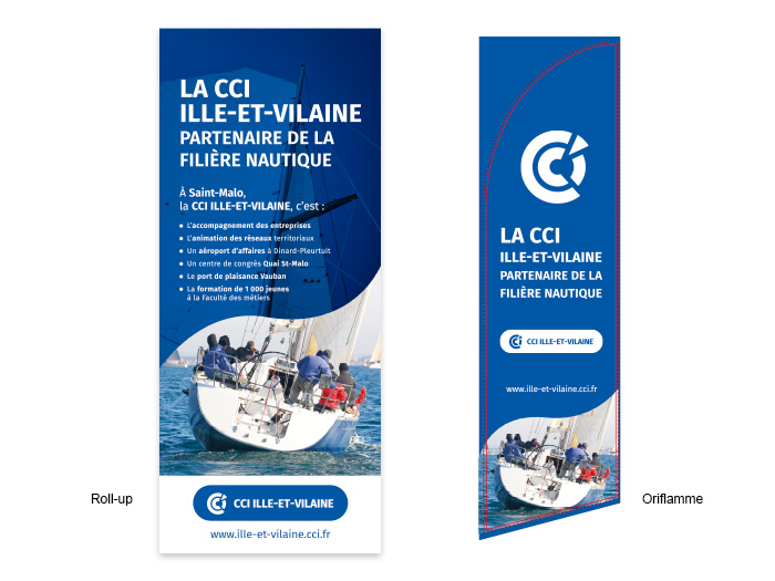 La CCI Ille-et-Vilaine, partenaire historique de la Route du Rhum, souhaite créer une communication impactante pour sa présence sur le village de Saint-Malo. Objectifs : être visible, lisible et respecter la charte graphique.